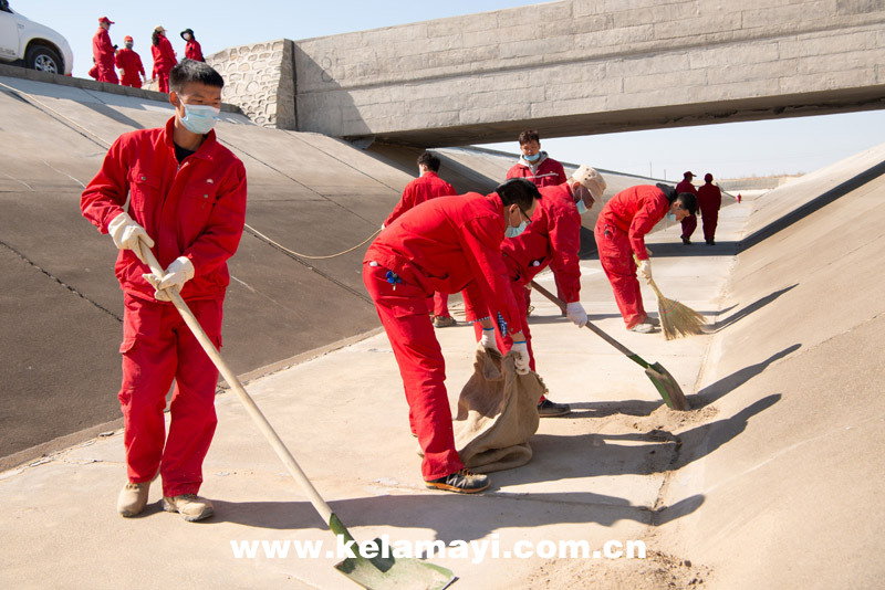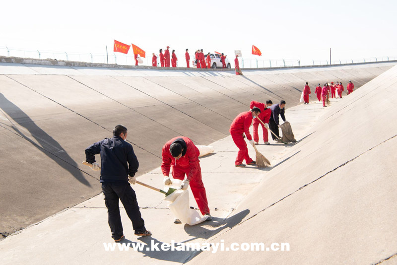 ????3月28日,為進(jìn)一步做好風(fēng)克干渠通水前的環(huán)境衛(wèi)生清理工作,為市民百姓營(yíng)造水清河美的4A級(jí)克拉瑪依河景觀,市水務(wù)公司各部門、各相關(guān)單位300余人開(kāi)展了風(fēng)克干渠、克拉瑪依河通水前環(huán)境衛(wèi)生義務(wù)大掃除活動(dòng)。