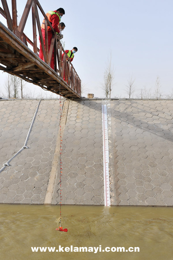 水務(wù)公司工作人員正在測(cè)量水位和流量。