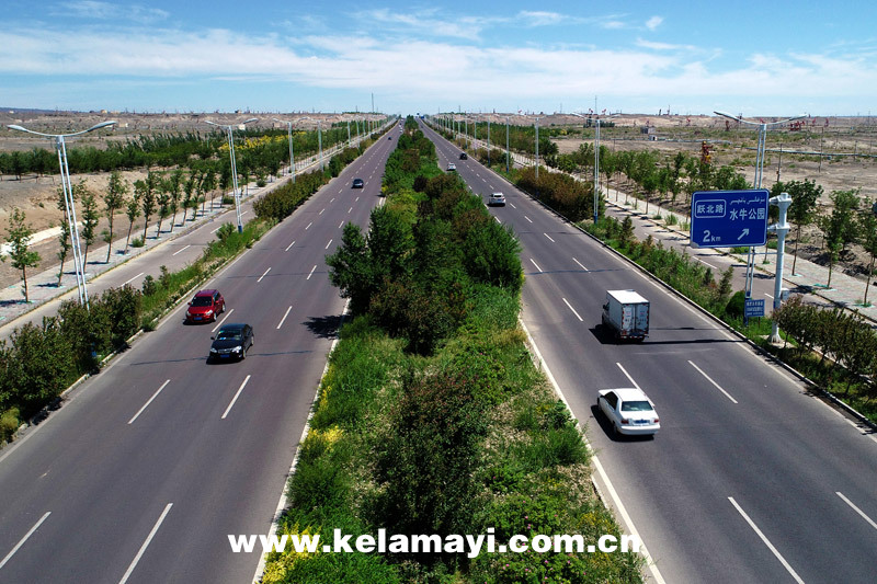 白堿灘區(qū)(克拉瑪依高新區(qū))連通克拉瑪依市區(qū)的克白快速路。 本報記者 李浩然 攝