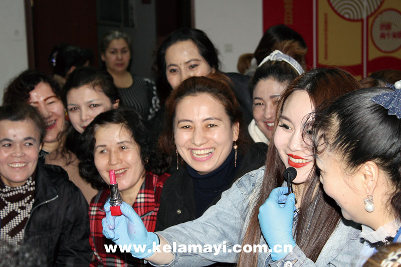白堿灘區(qū)(克拉瑪依高新區(qū))五新社區(qū)開展民族團(tuán)結(jié)特色活動(dòng):指尖上的民風(fēng)民俗——制作口紅。本版圖片均攝于疫情前