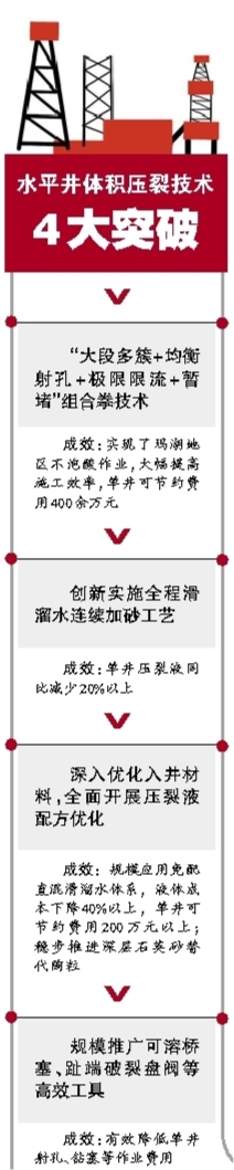 ????一是攻關(guān)形成水平井“大段多簇+均衡射孔+極限限流+暫堵”組合拳技術(shù),實(shí)現(xiàn)了瑪湖地區(qū)不泡酸作業(yè),大幅提高了施工效率,單井可節(jié)約費(fèi)用400余萬(wàn)元。