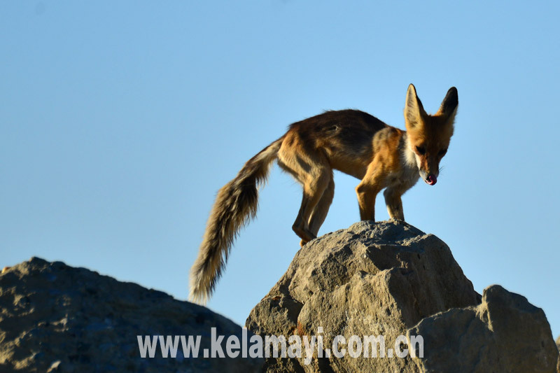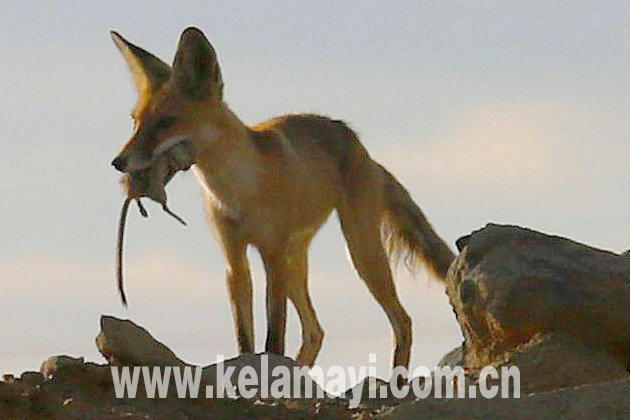 6月19日,骨瘦如柴的狐貍登高覓食。