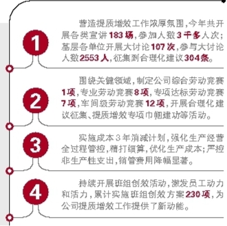 ????公司通過競賽活動,推進管理創(chuàng)效,并取得較好效果。今年以來。公司持續(xù)開展班組創(chuàng)效活動,激發(fā)員工動力和活力,累計實施班組創(chuàng)效方案230項,為公司提質(zhì)增效工作提供了新動能。