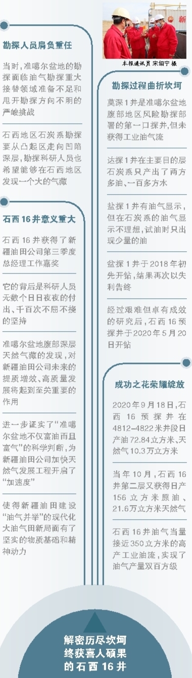 ????而在當(dāng)年10月初,石西16井日產(chǎn)再創(chuàng)新高,在4723—4738米井段日產(chǎn)油157立方米、天然氣21.6萬立方米,獲得三百五十余噸油氣當(dāng)量,刷新新疆油田公司當(dāng)年單井油氣產(chǎn)量最高紀(jì)錄。