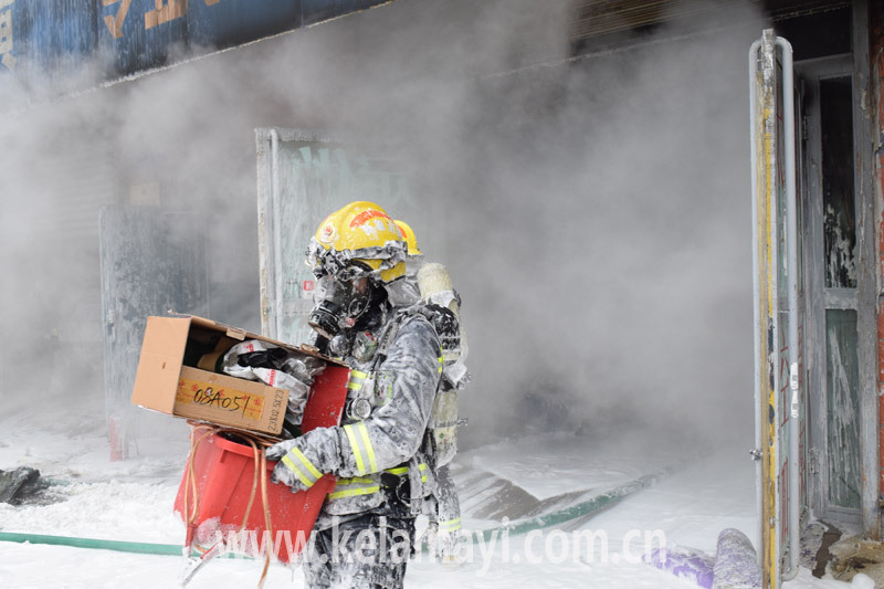 ????在撲救過程中,消防員不畏嚴寒和烈火炙烤,在冰與火的雙重考驗下圓滿完成任務。當天,克拉瑪依區(qū)的天氣為多云間晴,風力5級,最低溫度-19℃,最高氣溫-12℃。在風的“加持”下,人的體感溫度比天氣預報顯示的溫度要更低。消防員在處置完火情準備脫下戰(zhàn)斗服的時候才發(fā)現(xiàn)被汗水、泡沫液打濕的戰(zhàn)斗服已經(jīng)凍住,頭盔上、戰(zhàn)斗服上結出一層厚厚的冰霜,儼然成了一副“冰鎧甲”。
