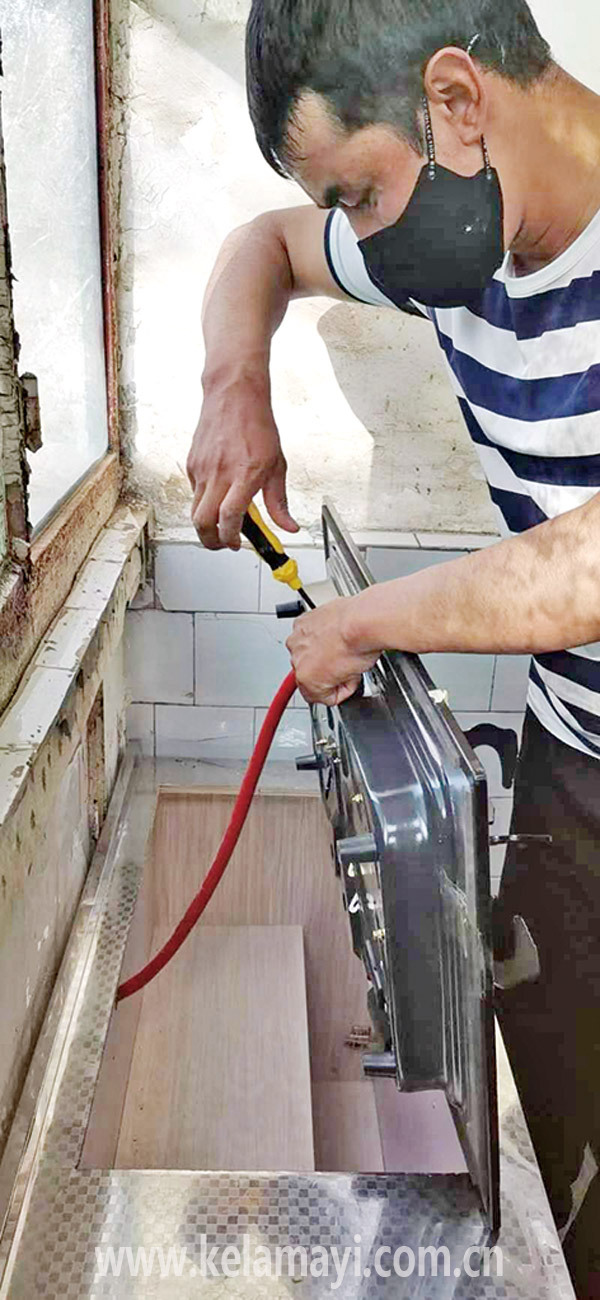 崔桂寶幫助鄰居修理燃?xì)庠睢?/p>