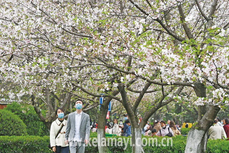 3月21日,李夢鴿和張敏望著美麗的櫻花,回味著一年前因抗疫而結緣的溫情,他們共同祝福祖國安寧、人民安康。