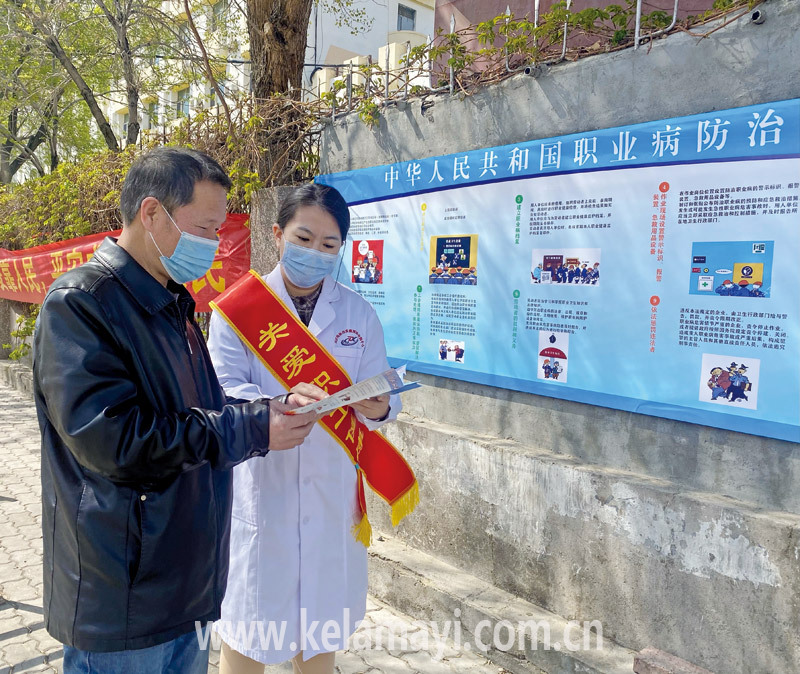 市疾控中心工作人員巴燕向市民宣傳《職業(yè)病防治法》,并發(fā)放宣傳冊(cè)。