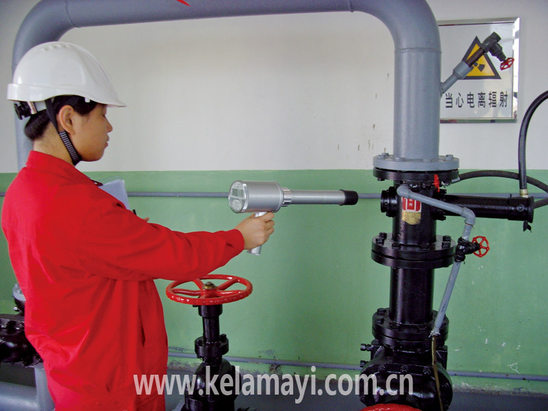 市疾控中心工作人員在分離器間對(duì)含密封源儀表進(jìn)行放射防護(hù)檢測(cè)。