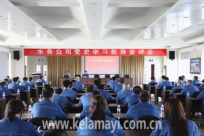 市水務(wù)公司黨員干部參加黨史學(xué)習(xí)教育宣講會(huì)。