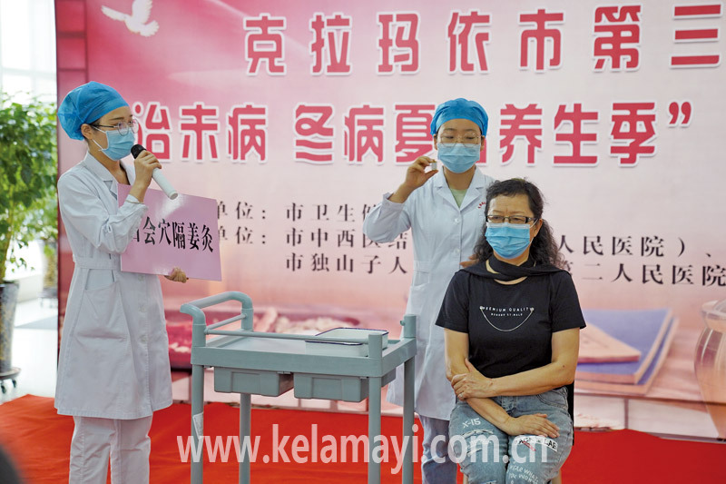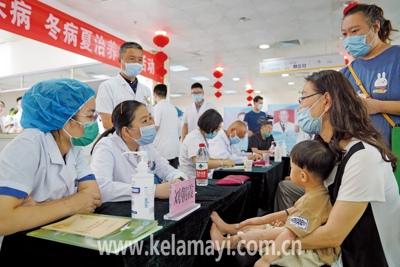 ????7月11日,由市衛(wèi)健委主辦,多家醫(yī)療機(jī)構(gòu)承辦的“健康城市之冬病夏治”系列活動(dòng)正式拉開帷幕。????啟動(dòng)儀式當(dāng)天,主會(huì)場(chǎng)市中西醫(yī)結(jié)合醫(yī)院(市人民醫(yī)院)推出了八段錦健身操表演、中藥材和膏方展示、中藥材知識(shí)普及、中醫(yī)養(yǎng)生健康茶飲介紹等活動(dòng)。疆內(nèi)外眾多知名中醫(yī)專家齊聚一堂,共同為市民把脈問診;市中心醫(yī)院、市獨(dú)山子人民醫(yī)院、順康康復(fù)醫(yī)院、神州中醫(yī)醫(yī)院等承辦單位也設(shè)立了分會(huì)場(chǎng),推出了形式多樣、內(nèi)容豐富的中醫(yī)養(yǎng)生活動(dòng),如中醫(yī)養(yǎng)生科普知識(shí)宣傳、夏季養(yǎng)生保健知識(shí)講座、 “三伏貼”服務(wù)、特色中醫(yī)療法體驗(yàn)等。