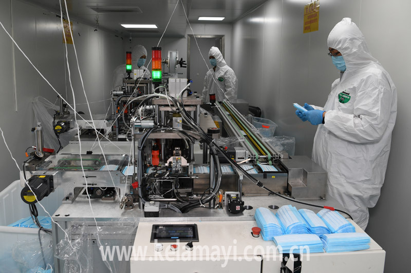 2020年8月20日,由上海援建,市城投公司投建的口罩生產(chǎn)線開工生產(chǎn),有效緩解了因疫情帶來的口罩緊缺的局面。全媒體首席記者 閔勇 攝