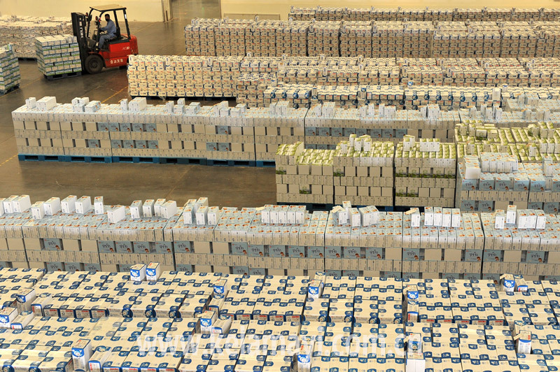 綠成乳品分公司的乳制品廠冷庫里正在擺放從生產(chǎn)線上運(yùn)來的乳制品。該公司2020年4月8日實(shí)現(xiàn)日產(chǎn)奶制品超百噸。全媒體記者 蔣劍 攝