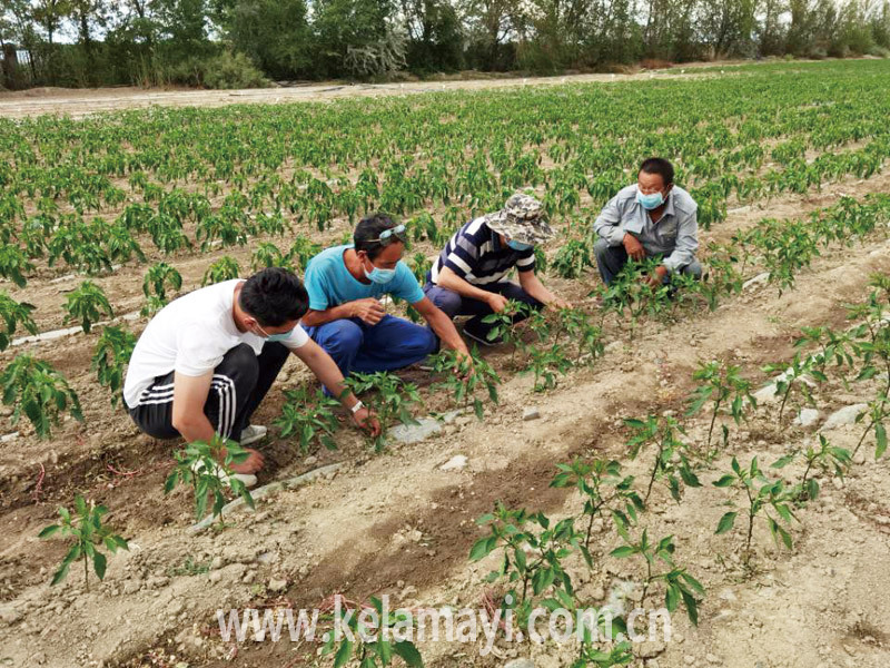 西部綠洲公司技術(shù)員在田間地頭教授種植戶種植技術(shù)。