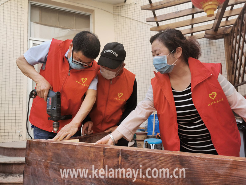 2020年4月26日,“紅色游騎兵”志愿服務(wù)隊(duì)幫助維修轄區(qū)公共設(shè)施。