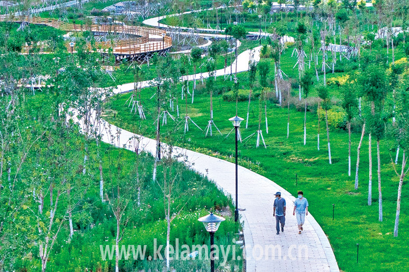 ????據(jù)該公園設(shè)計(jì)方、克拉瑪依城市規(guī)劃設(shè)計(jì)院設(shè)計(jì)負(fù)責(zé)人李晨介紹,公園的總體定位是打造城市的休閑公園,構(gòu)建具有活力的生態(tài)濕地。因此,在設(shè)計(jì)時(shí),設(shè)計(jì)人員秉承尊重自然、順應(yīng)自然的理念,最大限度加強(qiáng)對(duì)城市原有生態(tài)環(huán)境的保護(hù)和利用,將公園分為城市花園景觀區(qū)域和生態(tài)濕地景觀區(qū)域。而該公園又被市政道路分為4個(gè)區(qū)域,所以又分別設(shè)計(jì)了濱水、林下、野趣和望山4大主題景觀。