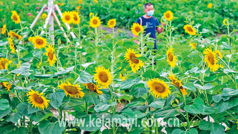 公園里的向日葵正在怒放,吸引了市民前往觀賞。