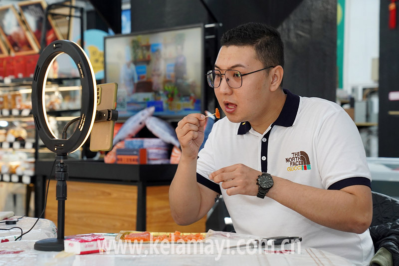 ????“隨便吃、隨便嘗,不花錢就可以吃到飽,快來跟我一起薅羊毛吧……”10月5日,在我市絲路臻選直購中心,一場線上電商平臺活動正在進行。