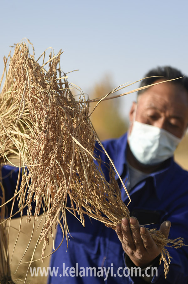 ????今年5月中旬,在西部綠洲公司的200畝節(jié)水抗旱稻試驗田里,新引種了3個“寶貝”,分別是“滬旱6220”“滬旱3032”“滬旱6005”。這3個“寶貝”是西部綠洲公司在上海援克前方指揮部的幫助下,與上海市農(nóng)業(yè)生物基因中心建立合作關(guān)系后,首次引種的節(jié)水抗旱稻品種。