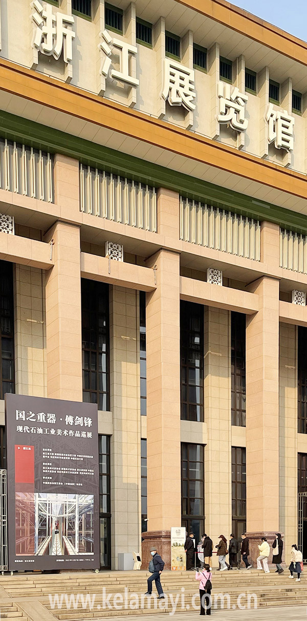 ????12月8日,浙江展覽館內(nèi),眾多美術(shù)愛好者駐足在一幅幅油畫前認真觀賞。????前一天,國之重器·傅劍鋒現(xiàn)代石油工業(yè)美術(shù)作品巡展(首站)在此開幕。