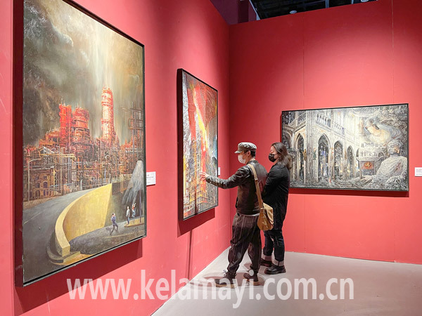 ????此次巡展共展出近60幅油畫作品,最大尺寸為4米*2米。展出作品以現(xiàn)代中國石油工業(yè)發(fā)展為主題,以克拉瑪依為創(chuàng)作母體,展現(xiàn)了克拉瑪依石油工業(yè)的發(fā)展巨變。