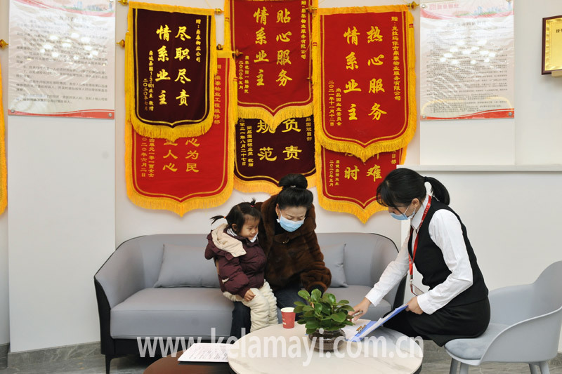 鼎泰物業(yè)的工作人員為業(yè)主辦理業(yè)務(wù)。