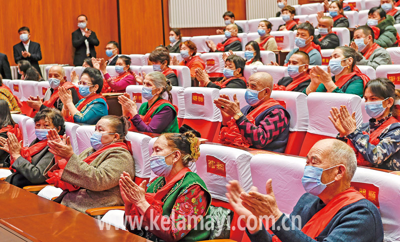????分紅發(fā)放大會現場,鳳翔小區(qū)居民吾土答·杜古爾說:“住樓房、有班上,自己種的菜都吃不完。我們能有今天的好生活,要感謝黨,感謝我們的好干部!”在吾土答·杜古爾身邊的蘇秀蘭、努爾東·托呼提、郭慎彩“三姐妹”舉起了手機,一邊拍合影,一邊喊著:“感謝黨的好政策,讓我們過上好日子!”