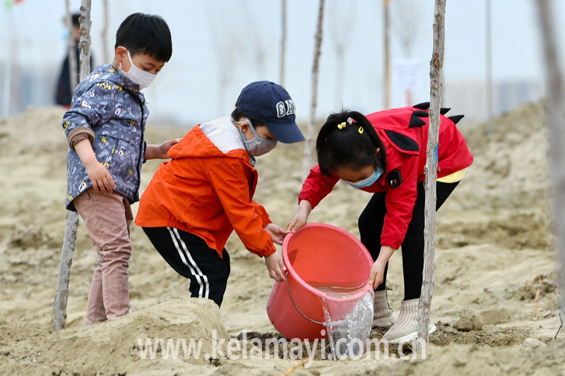 克拉瑪依人從小參加義務(wù)植樹,成了義務(wù)植樹現(xiàn)場一道獨(dú)特風(fēng)景。本報(bào)資料圖(蔣劍 攝)