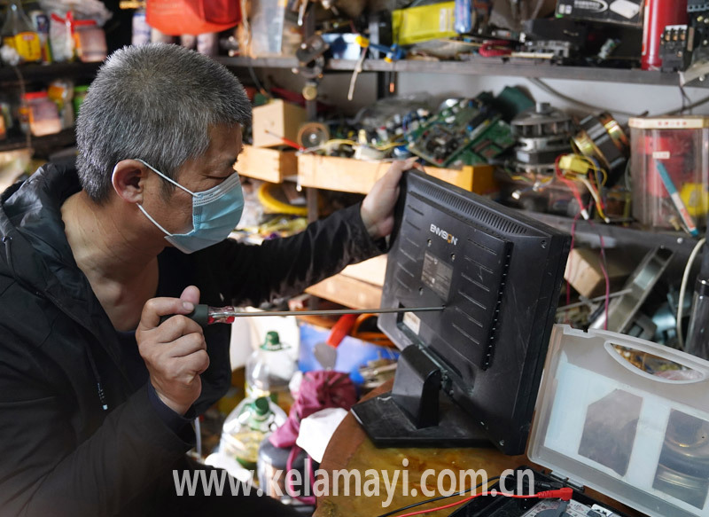 ?4月6日,在我市一個(gè)家電維修部,維修人員正在維修一臺(tái)電腦顯示屏。在我市,有些家電雖然過(guò)了安全使用期限,很多市民仍然選擇維修后再使用。全媒體實(shí)習(xí)記者 非爾代維斯·熱夏提 攝