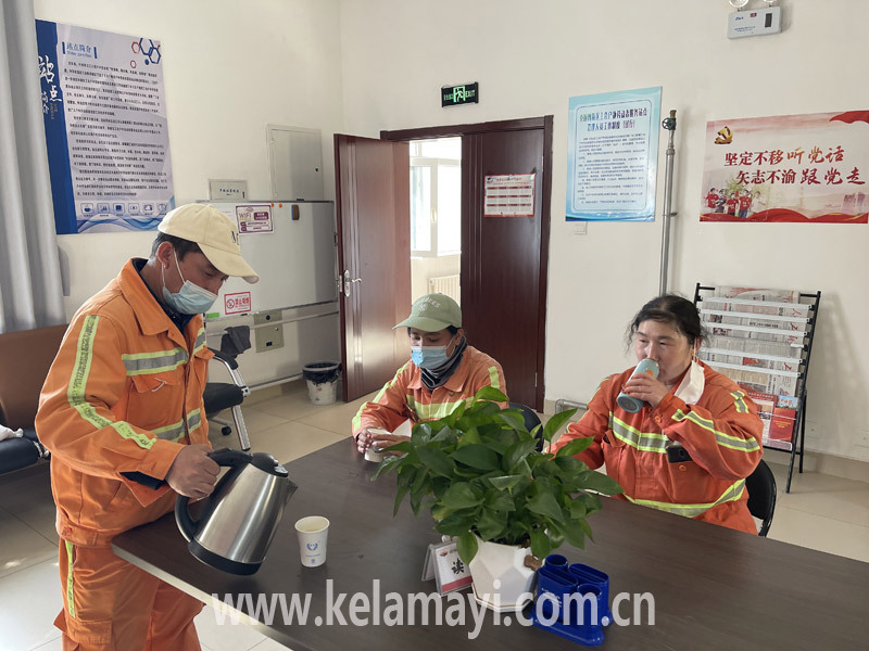 ????1月22日,在位于南新路與碧水路交匯處的克拉瑪依區(qū)工會(huì)戶(hù)外勞動(dòng)者服務(wù)站點(diǎn),3名保潔員正在站點(diǎn)休息。