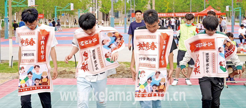 5月1日,參賽學(xué)生參加“五四”青年快快跑趣味闖關(guān)活動(dòng)。