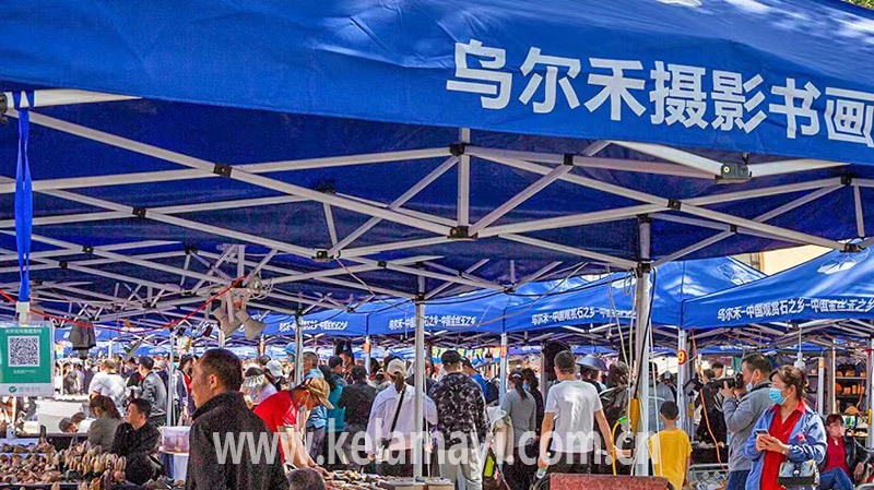 “五一”期間,烏爾禾區(qū)“西部烏鎮(zhèn)”,金絲玉展現(xiàn)場人頭攢動。本報通訊員 王旭 攝