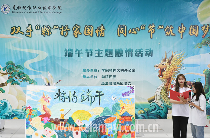 ????隨后,學(xué)院老師唐努爾·吐爾哈力現(xiàn)場展示了油紙傘作畫過程;由經(jīng)濟(jì)管理系師生利用半個(gè)月創(chuàng)作完成的巨幅水彩畫《粽情端午》也與大家見面;學(xué)生還一同朗誦了《離騷》,讓大家對(duì)端午節(jié)有了更深的理解。演出的間隙,主持人組織大家進(jìn)行了“神筆馬良”游戲及有獎(jiǎng)問答等環(huán)節(jié),進(jìn)一步增進(jìn)了師生間的交流協(xié)作。