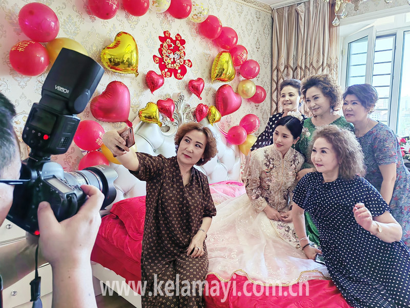 ????“來啦來啦……”9時,化著新娘妝,身著華麗秀禾服的史婉茹,挽著從家鄉(xiāng)黑龍江省大慶市趕來的爸爸媽媽走進艾曼·達賽家,迎接他們的,是熱烈的掌聲和歡呼聲。