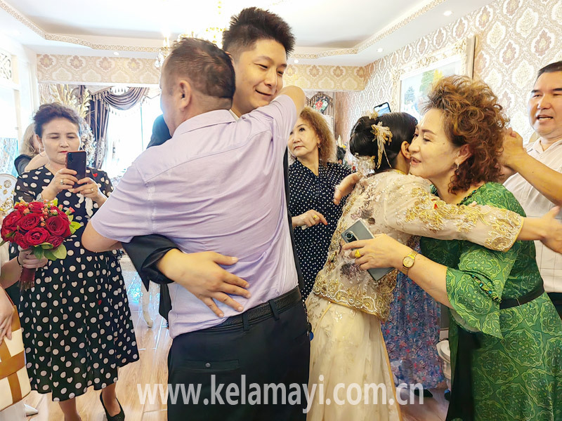 ????11時,就在新郎牽著史婉茹的手即將踏出家門那一刻,艾曼·達賽和沙依拉古力·孜克力亞突然沖上去,4個人緊緊抱在了一起。