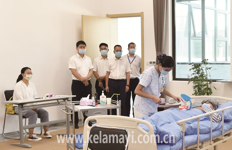 ????“奶奶,我來給你擦藥,可能會有點疼,您稍微忍耐下?!痹趫鼍盎慕】岛蜕鐣兆o考場里,翟婕妤正熟練地給躺在病床上的“燙傷老人”擦藥。翟婕妤是克拉瑪依區(qū)融匯養(yǎng)老服務有限公司的參賽選手,從業(yè)已有3年時間。