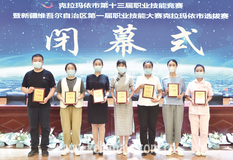 獲得我市第十三屆職業(yè)技能競賽暨自治區(qū)第一屆職業(yè)技能大賽克拉瑪依市選拔賽第三名的選手們合影留念。本版圖片均由本報全媒體記者 努爾買買提·艾山 攝