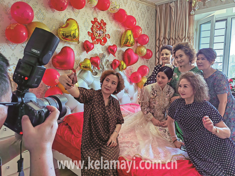 ????7月16日中午,史婉茹的父母和親人趕到克拉瑪依后,艾曼·達(dá)賽一家在家里隆重接待了他們,商量了婚禮當(dāng)天的送嫁迎親流程。