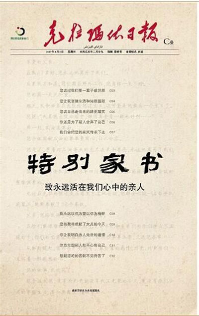 ????這一封封特別家書(shū),是中華民族自古就有的慎終追遠(yuǎn)、緬懷先輩的優(yōu)良傳統(tǒng),是我們對(duì)先烈先賢和逝去的親人的追思,更是為他們優(yōu)秀精神和品格的傳承積蓄了精神力量——