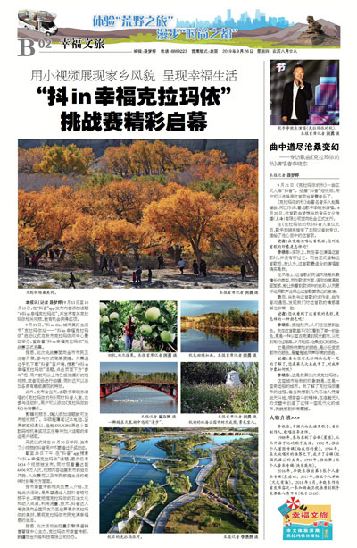 ????2019年,針對上述活動,《克拉瑪依日報(bào)》通過“幸福文旅”???、油城新聞等推出十余個版面,圖文并茂、多種形式報(bào)道了我市旅游產(chǎn)業(yè)的快速發(fā)展,跟蹤記錄了多項(xiàng)旅游大事件的發(fā)生。