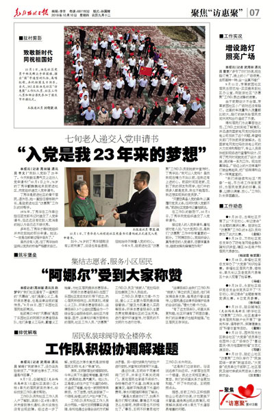 ????●安裝休閑座椅、修暖心路、疏通下水道、搶修漏水屋頂……駐村工作隊(duì)發(fā)揮各自專長(zhǎng),為居民們做實(shí)事、做好事,哪里有困難,工作隊(duì)隊(duì)員忙碌的身影就在哪里。全市各“訪惠聚”工作隊(duì)隊(duì)員為居民提供及時(shí)細(xì)致的暖心幫助,感謝他們的辛苦付出與不懈努力。