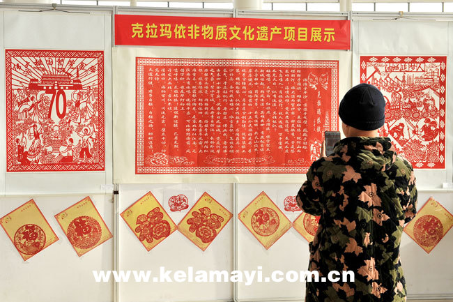 ????由我市剪紙工藝美術(shù)協(xié)會(huì)會(huì)員鄧新義創(chuàng)作的剪紙作品《克拉瑪依賦》吸引了眾人的目光。該作品長(zhǎng)兩米,寬80厘米。鄧新義的作品以易中天的《克拉瑪依賦》為創(chuàng)作基礎(chǔ),將文字內(nèi)容以剪紙的形式表現(xiàn)出來(lái),現(xiàn)場(chǎng)獲得觀展者的贊嘆。