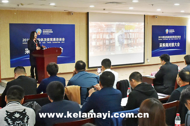 ????10月25日,2019克拉瑪依投資貿(mào)易洽談會(huì)(以下簡(jiǎn)稱“2019克洽會(huì)”)舉行了采購(gòu)商對(duì)接活動(dòng),65家采購(gòu)商和52家供應(yīng)商現(xiàn)場(chǎng)對(duì)接洽談。????新疆國(guó)際博覽事務(wù)局、中國(guó)紡織品進(jìn)出口商會(huì)、河北商業(yè)聯(lián)合會(huì)、霍爾果斯商業(yè)聯(lián)合會(huì)、烏蘇市商務(wù)和工業(yè)信息化局、絲綢之路經(jīng)濟(jì)聯(lián)合會(huì)、新疆甘肅商會(huì)、新疆安徽商會(huì)、陜西新疆商會(huì)、天津新疆商會(huì)、石家莊商會(huì)、克拉瑪依甘肅商會(huì)等各商協(xié)會(huì)以及企業(yè)代表參加了對(duì)接活動(dòng)。