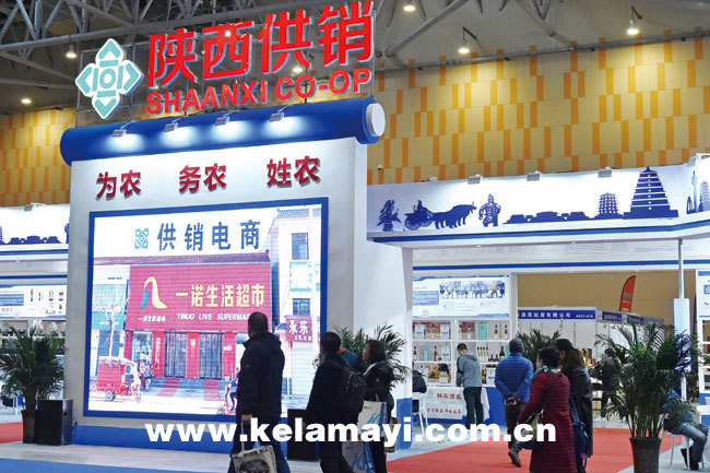????陜西省供銷社展臺展示了茶葉、獼猴桃、蘋果、羊肉等土特產(chǎn)品,吸引了眾多客商前往參觀和洽談合作。