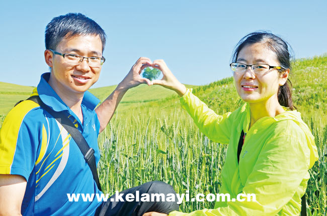 曾磊和妻子在麥田合影。 (照片由本人提供)