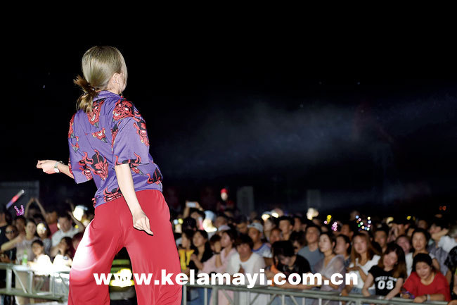 ????下半場(chǎng)由全能型音樂人的MC金強(qiáng)和DJ Queena帶領(lǐng)觀眾嗨翻全場(chǎng)。當(dāng)MC金強(qiáng)帶領(lǐng)全場(chǎng)高呼“克拉瑪依是個(gè)充滿愛的城市”時(shí),漫天的彩花飄落,舞臺(tái)邊的煙霧沖破黑夜,電音沖撞著心臟,燈光點(diǎn)亮了夜空,現(xiàn)場(chǎng)氛圍被推至高點(diǎn)。觀眾們閉上眼睛,全情享受,隨著音樂擺動(dòng)身軀就是音樂的一個(gè)音階,踏著風(fēng)的節(jié)奏讓皮膚一寸一寸綻放。