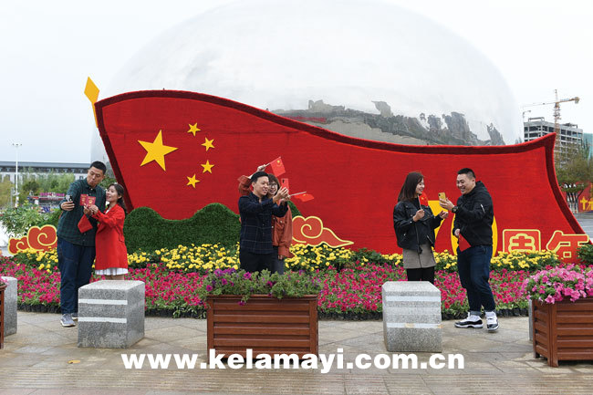 2019年10月1日,克拉瑪依區(qū)的新人領取結婚證后拍照留念。本報記者 張玨 攝