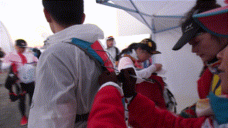 清晨5時許,23歲的岳智紅就在起跑點忙碌著。她忙著幫選手們存包,并在每位選手們離開時,都說一句“加油!”。