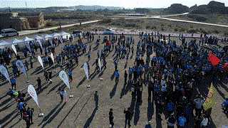 參加100公里賽和50公里賽的專業(yè)組選手們陸續(xù)到達起點開始熱身,世界魔鬼城漸漸地?zé)狒[起來。