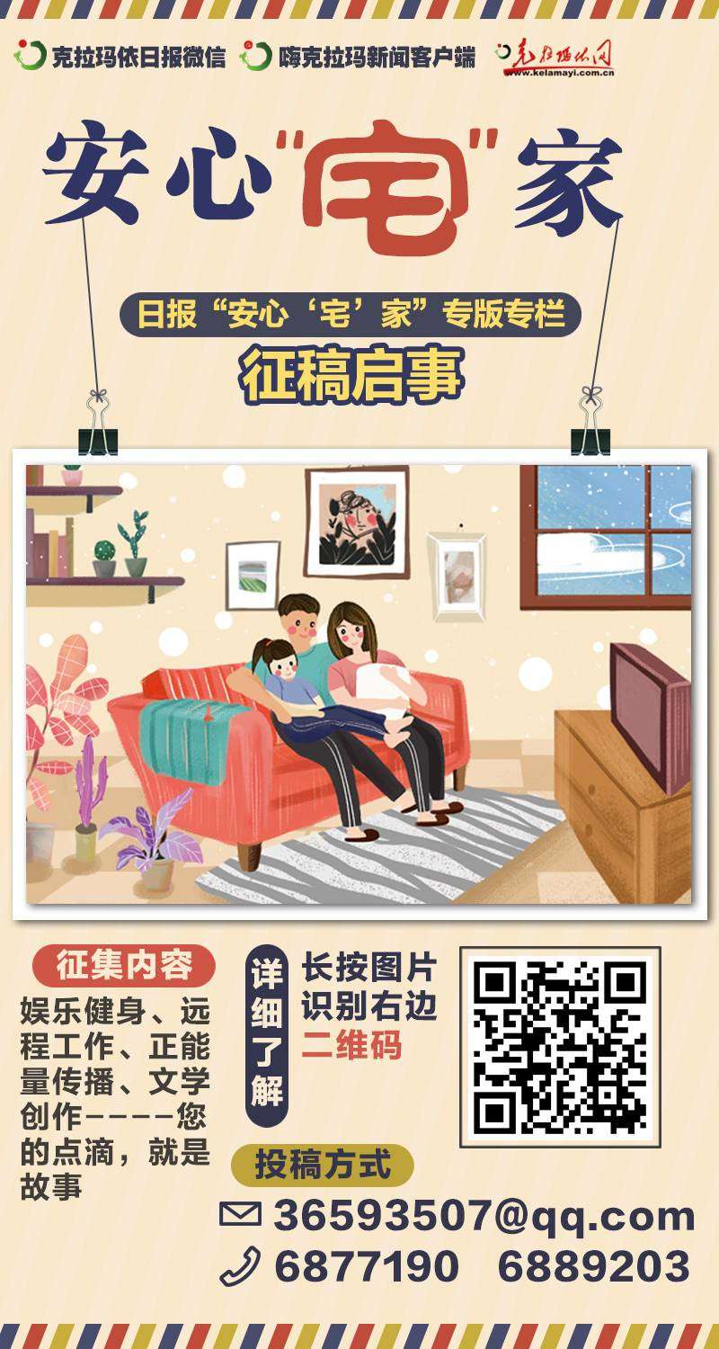 自新型冠狀病毒感染的肺炎疫情發(fā)生以來(lái),我市廣大市民積極響應(yīng)并嚴(yán)格遵守黨中央的防控部署和自治區(qū)黨委、市委的防控要求,盡最大可能宅在家中、阻隔疫情。從即日起,《克拉瑪依日?qǐng)?bào)》將開(kāi)設(shè)“安心‘宅’家”專版專欄,現(xiàn)對(duì)相關(guān)新聞線索及稿件、圖片進(jìn)行有獎(jiǎng)?wù)骷?/p>